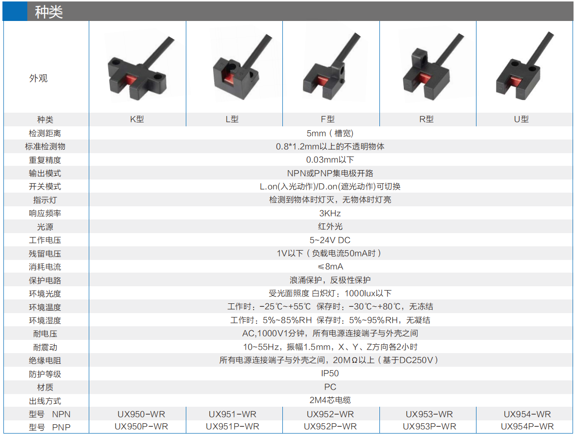 *国产行业首创传感器专用芯片*内置稳压模块3.3V~32V宽电压输入*标配常开常闭双路输出抗电磁干扰能力强*标配正负短路、输出短路、输出逆接三重保护*标配2米柔性线可根据要求定制线长、定制拖链传感器线*标配五种超小尺寸不同安装形状的微型传感器适合小型电子设备